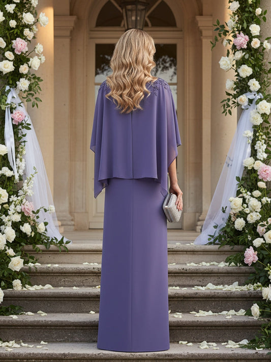 Sheath 3D Floral Embellished Lace Floor-Length Mother of the Bride with Chiffon Capelet Sleeves