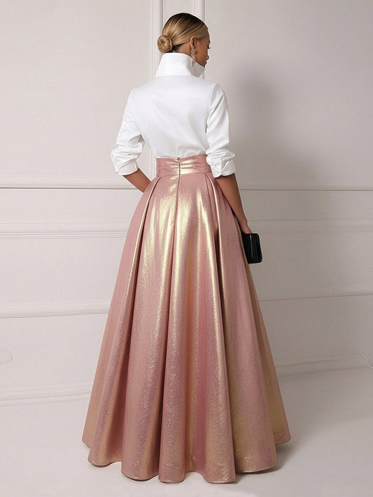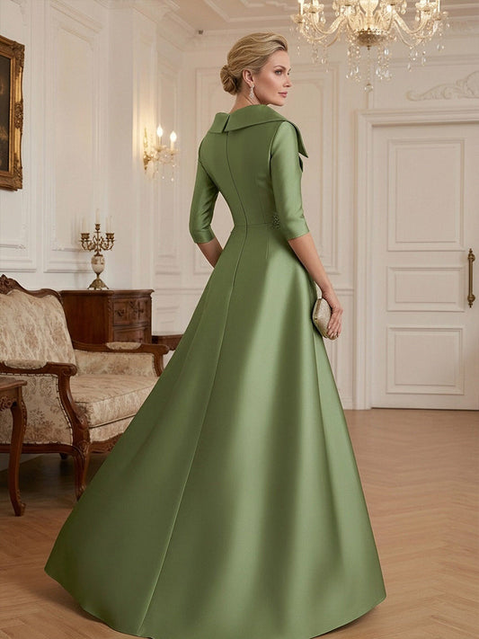 A Line Shirt Collar Half Sleeve Long Elegant Mother of the Bride Dresses with Pleats