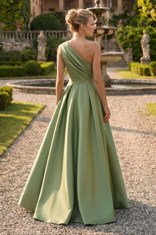 A-Line Pleated Chiffon One Shoulder Floor-Length Mother of the Bride