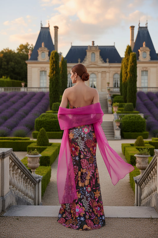 Fuchsia Shawl Strapless Sleeveless Flowers Mermaid Floral Print Evening Dress