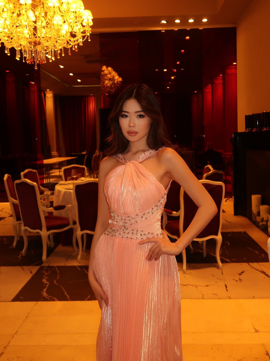 Fashion Beaded Sleeveless Backless A-Line Evening Dress