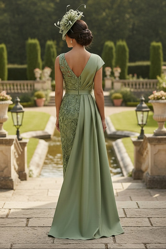 Lace Appliques Illusion Floor-Length Mother of the Bride with Cape