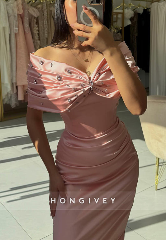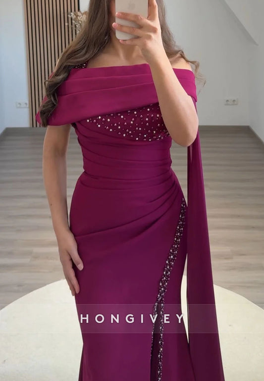Side Draping Trumpet Evening Gown Floor-Length Off the Shoulder Beading Formal Dresses