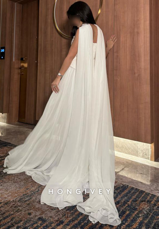 Evening Gown A-line Watteau Train Pleated Formal Dress