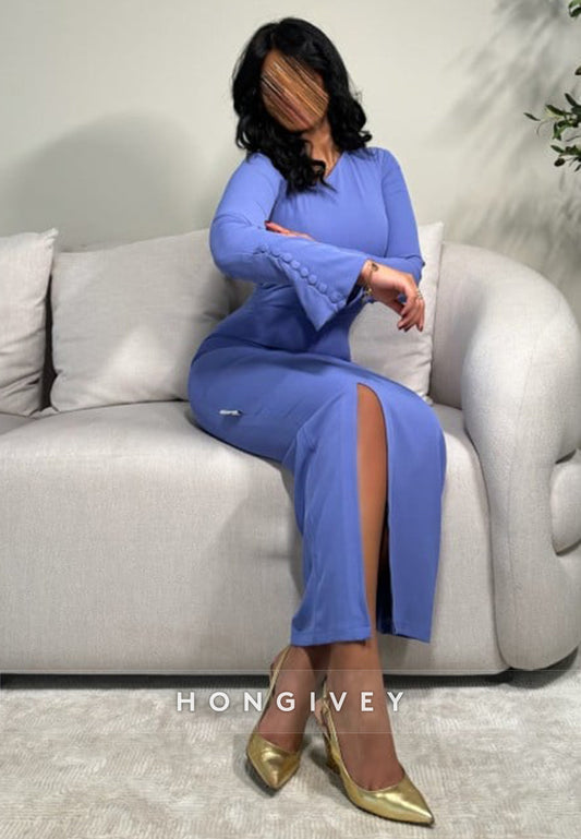 Short Sleeves Sleek Sheath Side Slit Floor-Length Sheath Formal Dress