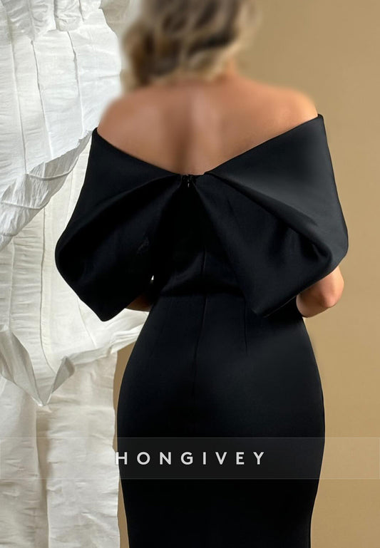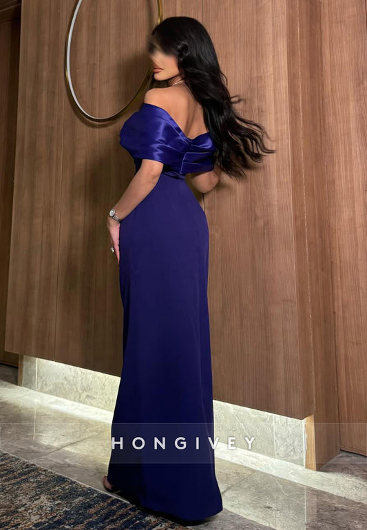 Elegant Satin Column Floor-Length Off the Shoulder Evening Gown