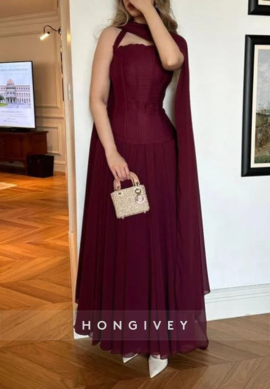 Regular Straps Formal Dresses Pleated Halter Floor-Length Princess Evening Gown