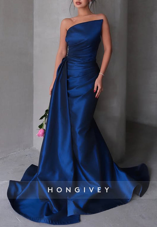 Sleeveless Pleated Trumpet Sweep Train Sweetheart Satin Evening Gown
