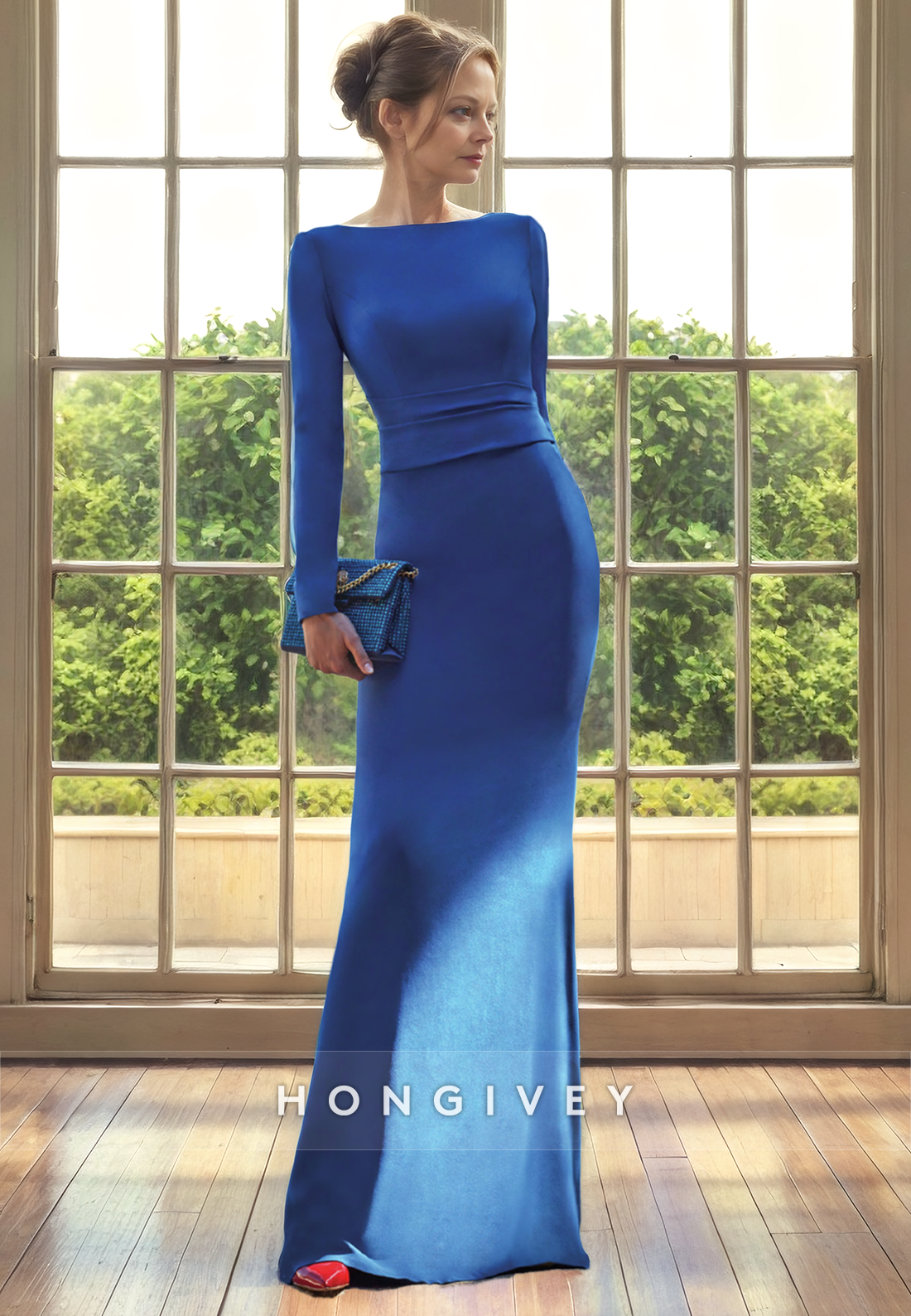 Satin Fitted Scoop Long Sleeve Empire Mother of the Bride Dress