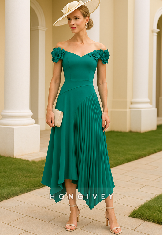 A Line Off The Shoulder Short Sleeves Applique Mother Dresses