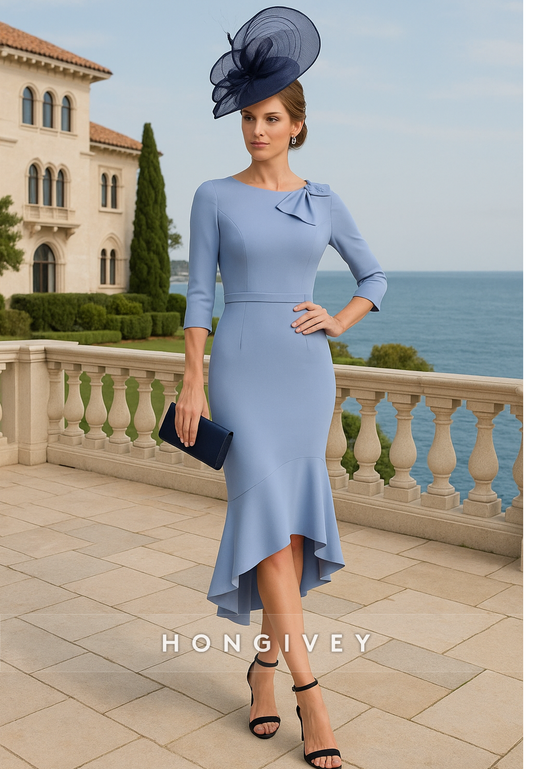 3/4 Sleeve Pleated Bowknot Pleated Asymmetrical Mermaid Mother of Bride Dresses