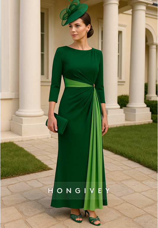 3/4 Sleeve Ruched Ankle-Length Pleated Column Mother of the Bride Dresses