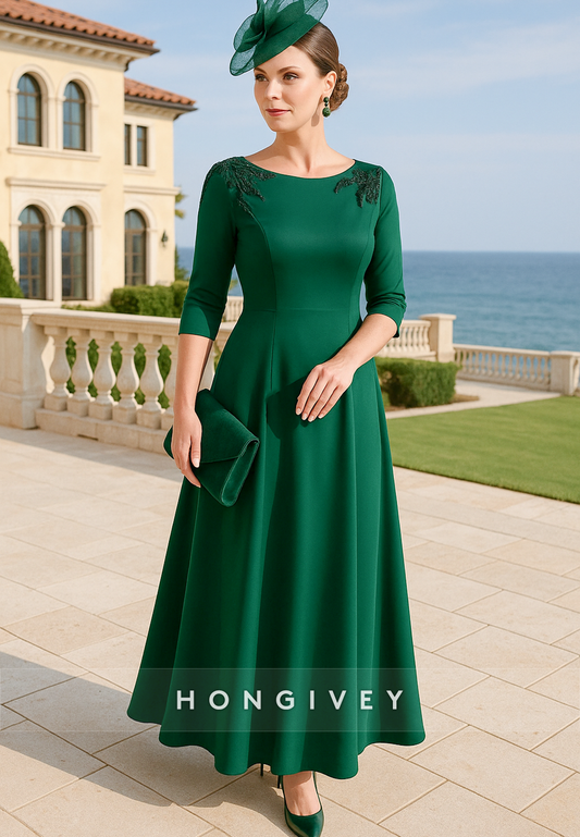 3/4 Sleeve Appliques Lace A-line Floor-Length Mother of the Bride