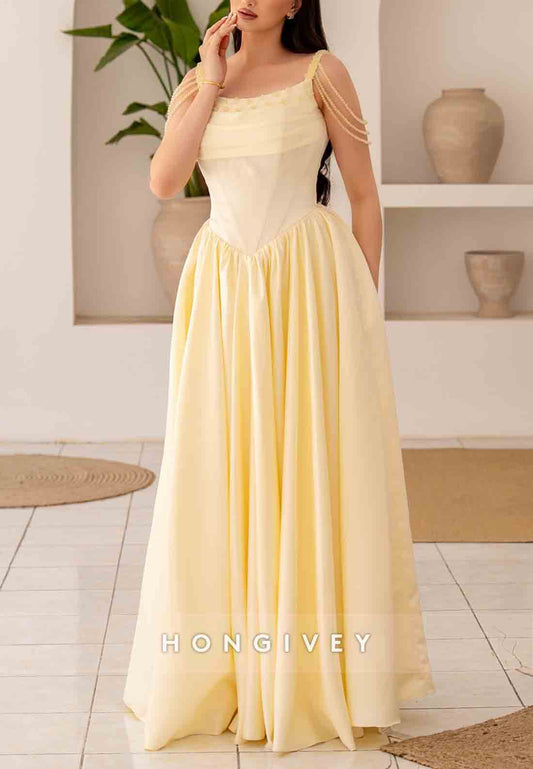 A Line Satin Beaded Prom Dresses Long Sweetheart Party Evening Gowns