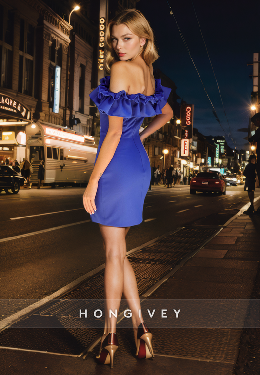Fitted Ruffled Off-Shoulder Empire Short Homecoming Dress