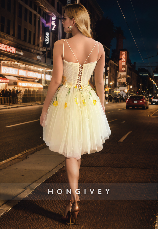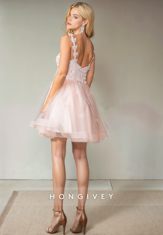 Sweet Tulle A-Line Sweetheart Spaghetti Straps Appliques Short Party Homecoming Dress