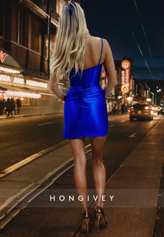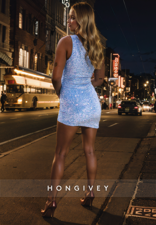 Sparkly Sheath One Shoulder Sleeveless Short Homecoming Dress