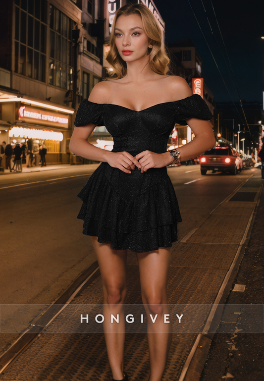 Sparkly A-Line Off-Shoulder Empire Short Homecoming Dress
