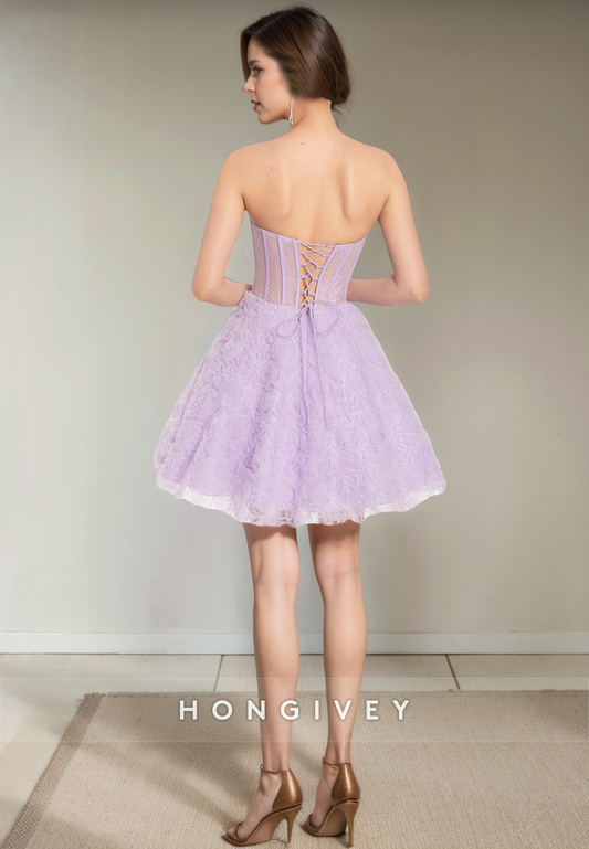 A-Line Sweetheart Strapless Floral Appliqued Short Party Homecoming Dress