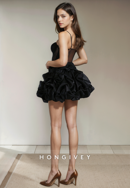 Sexy Black Sheer Sweetheart Spaghetti Straps Short Party Homecoming Dress