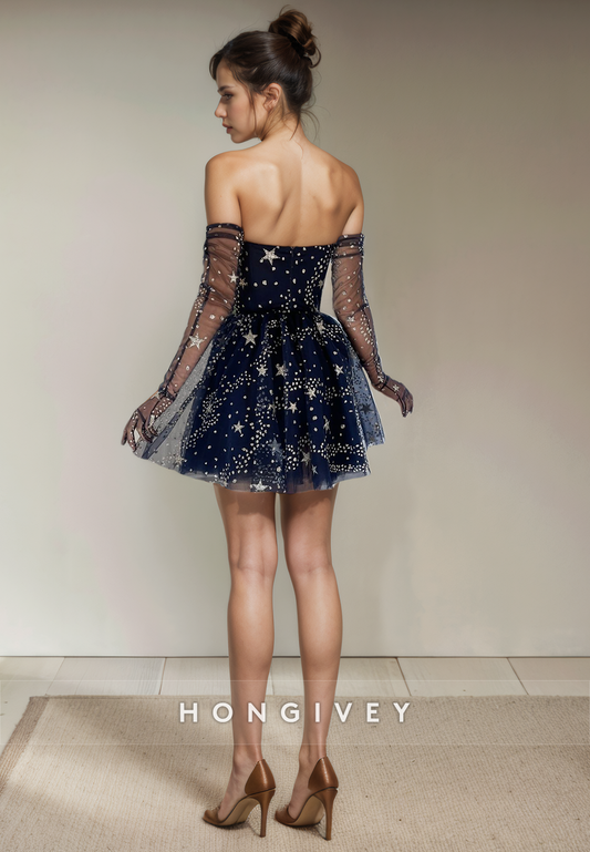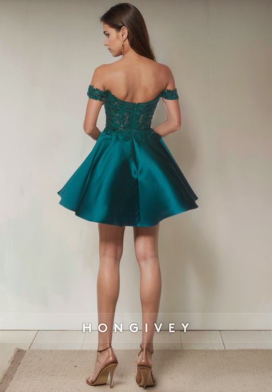 Off-Shoulder Sweetheart Lace Applique Sheer Short Party Homecoming Dress