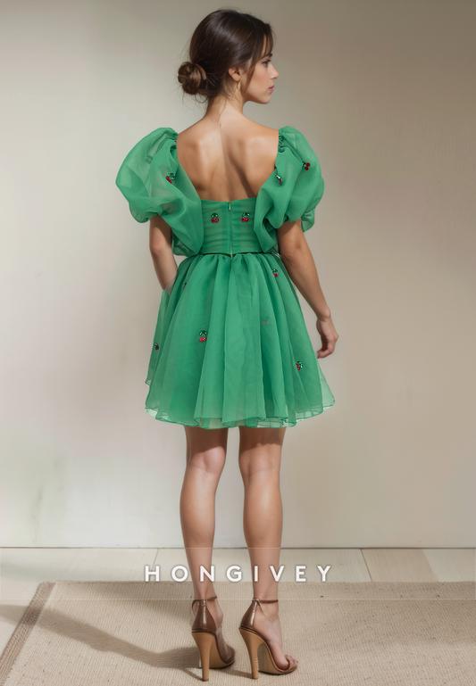 Chic A-Line Puff Sleeves Empire Short Party Homecoming Dress