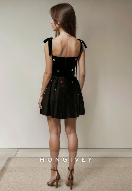 A-Line Square Spaghetti Straps Appliques With Pockets Short Party Homecoming Dress