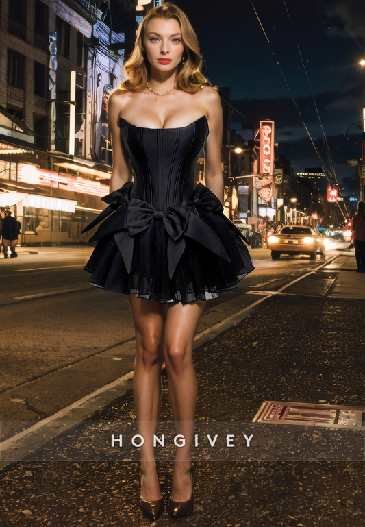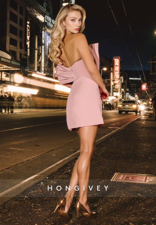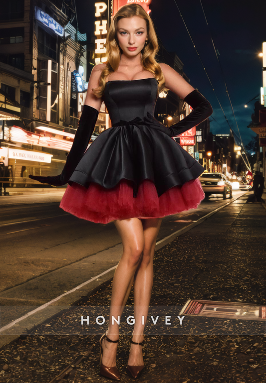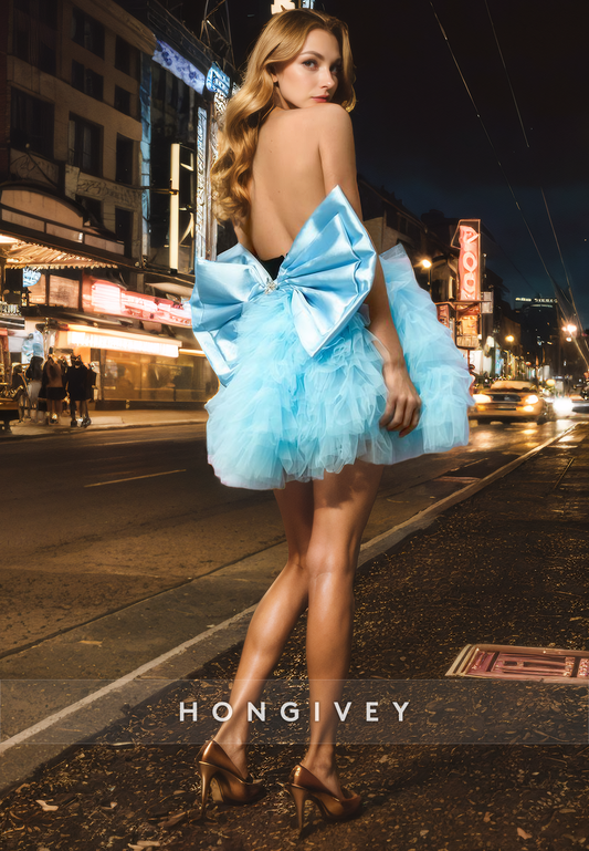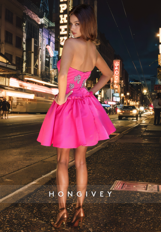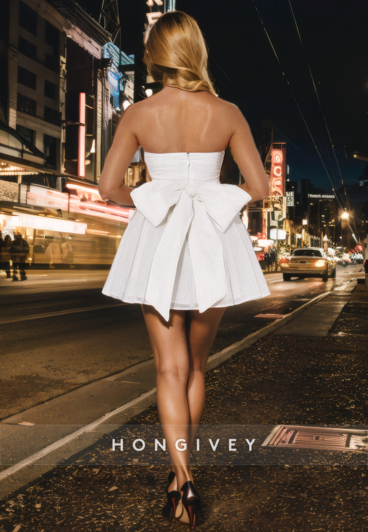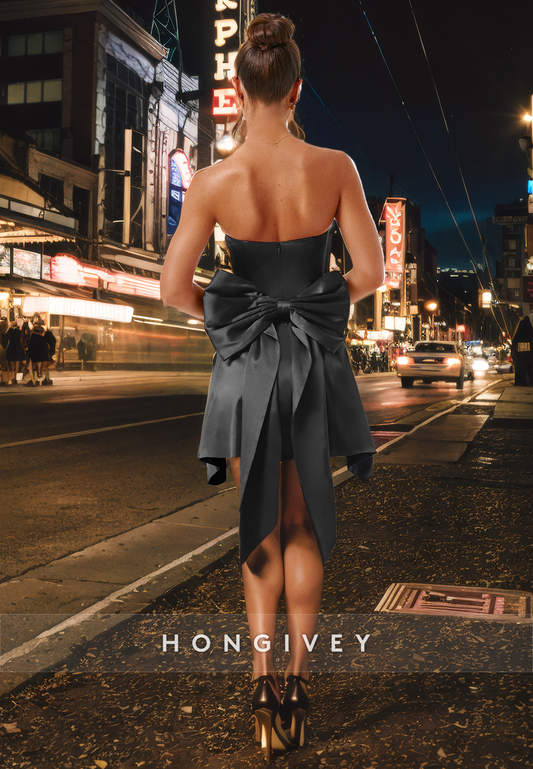 Satin A-Line Strapless Sleeveless Bowknot Short Homecoming Dress