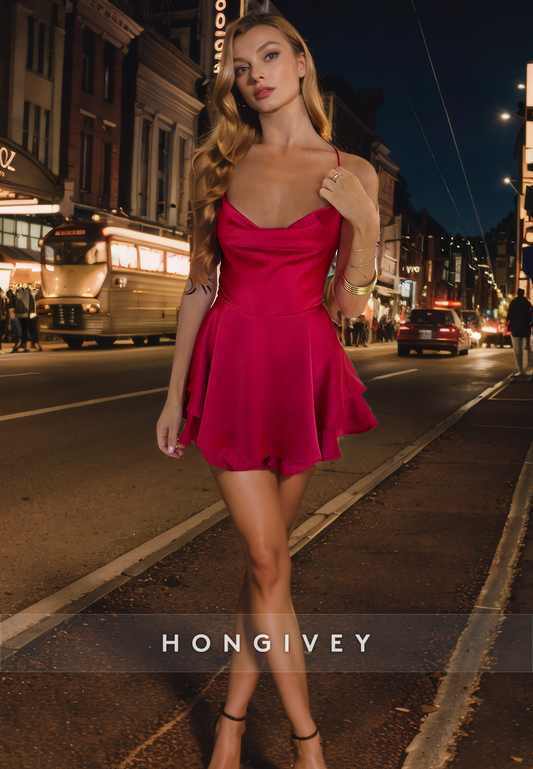 Satin A-Line Spaghetti Straps Lace-Up Short Homecoming Dress