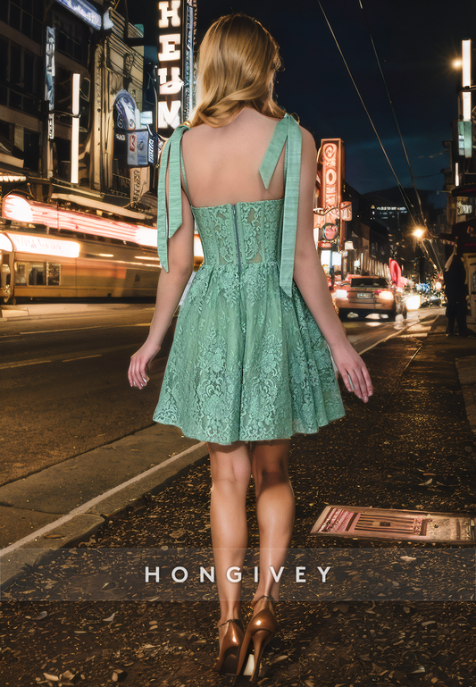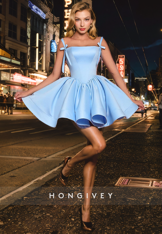 A-Line Sweetheart Bowknot Spaghetti Straps Short Homecoming Dress