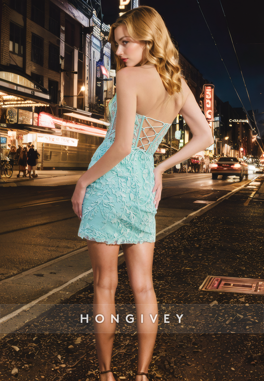 Sexy Fitted Sweetheart Strapless Lace Applique Short Homecoming Dress