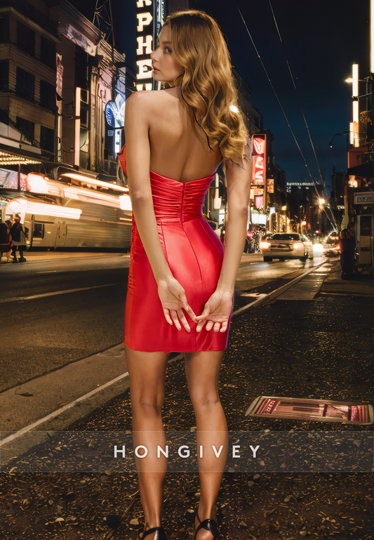 Fitted Sweetheart Sleeveless Pleats Beaded Short Homecoming Dress