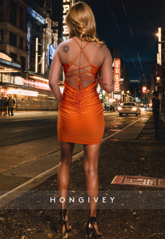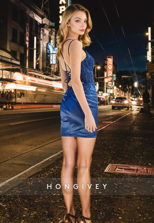 Sexy Fitted V-Neck Spaghetti Straps Lace-Up Party/Homecoming Dress