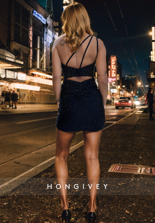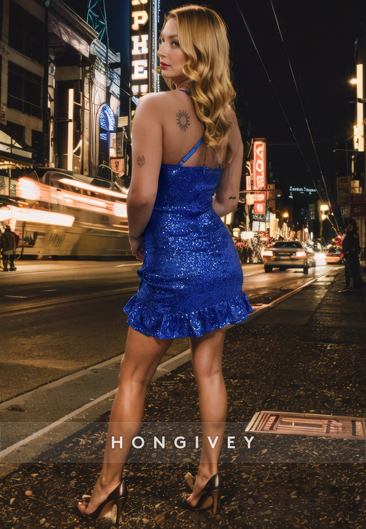 Glitter Fitted One Shoulder Sleeveless Party/Homecoming Dress