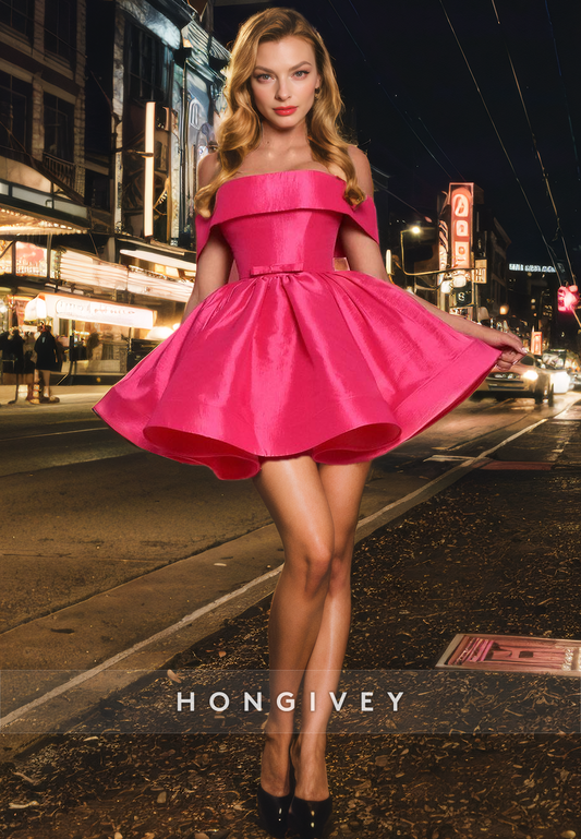 Satin A-Line Bowknot Off-Shoulder Short Homecoming Dress