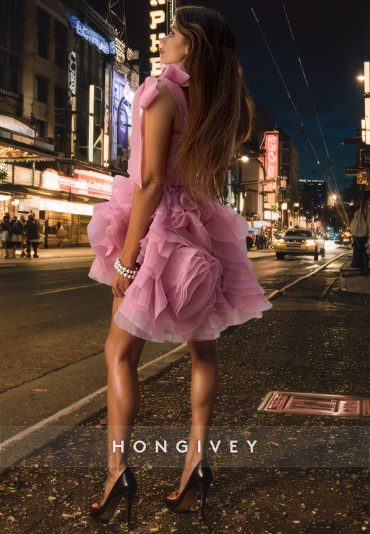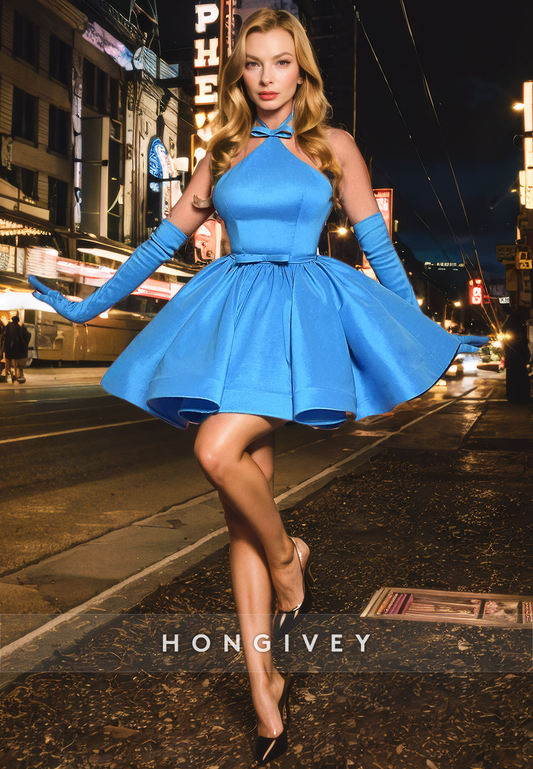 A-Line High Neck Empire Bowknot Satin Party/Homecoming Dress