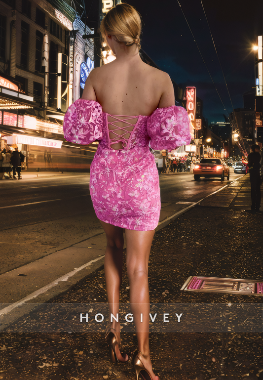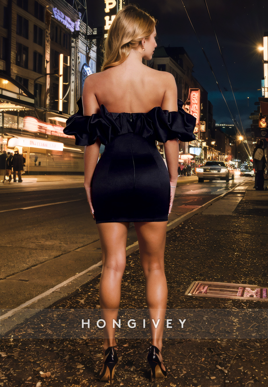 Sheath Off-Shoulder Puff Sleeves Satin Short Party/Homecoming Dress