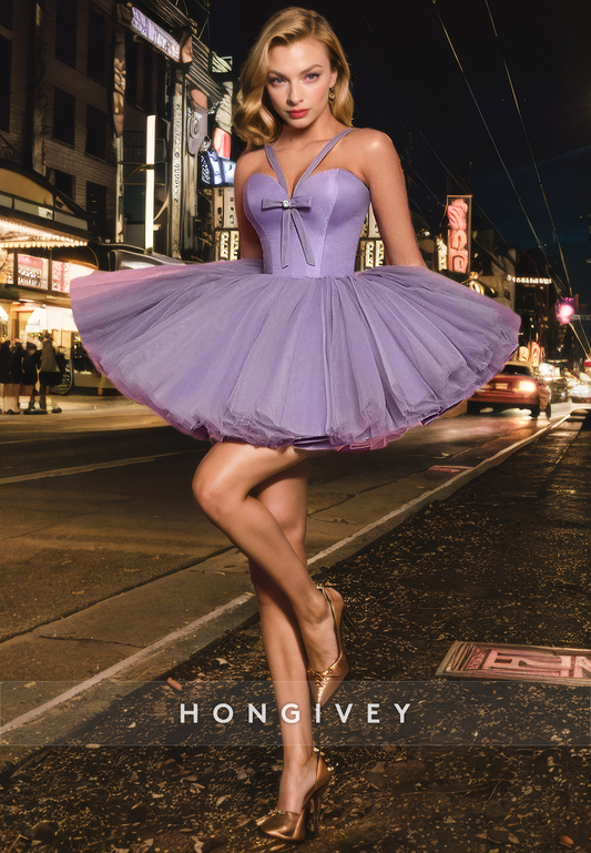 Chic Tulle A-Line Sweetheart Bowknot Spaghetti Straps Party/Homecoming Dress