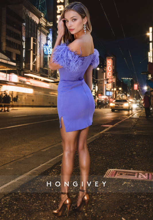 Fitted Square Feathers Off-Shoulder Empire Party/Homecoming Dress