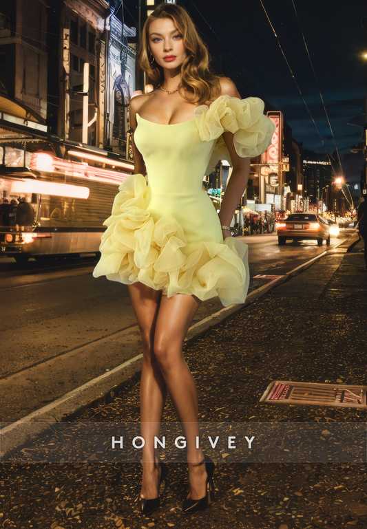 Tulle A-Line Off-Shoulder Sheer Empire Short Homecoming Dress