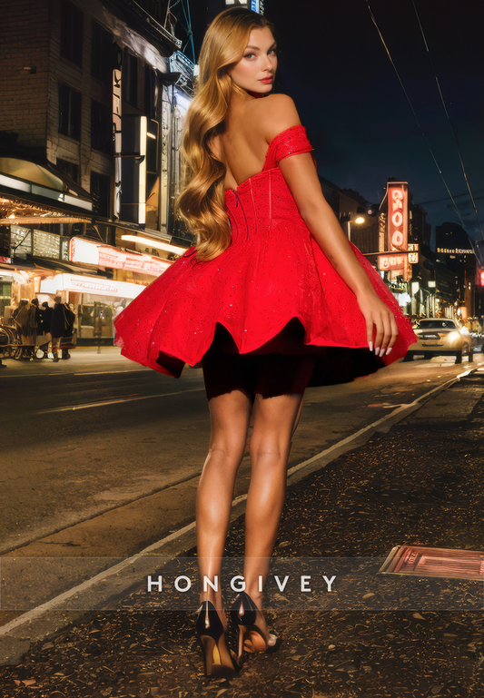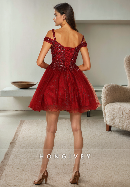 A-Line Sweetheart Off-Shoulder Beaded Sequined Short Homecoming Dress