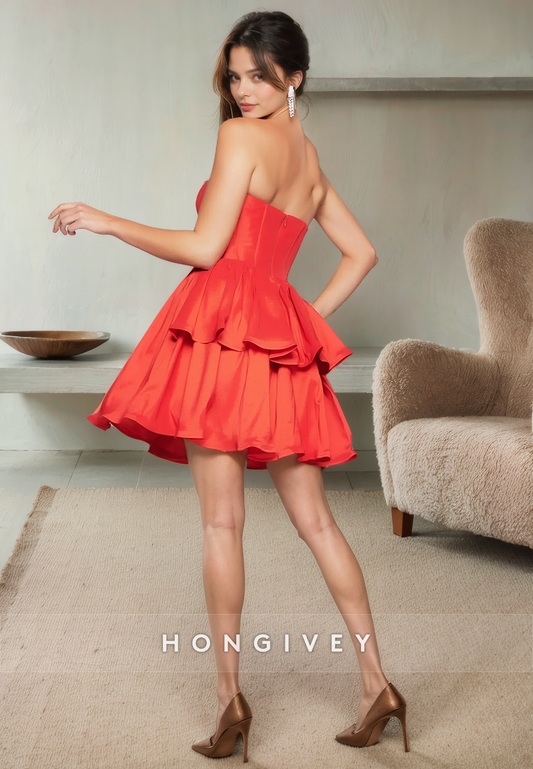 Satin Sweetheart Strapless Empire Pleats Short Party Homecoming Dress