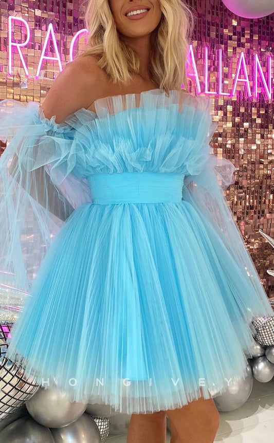 H2135 - Sexy Fitted Glitter Sweetheart Strapless Puff Sleeves Gown Appliques Party/Homecoming Dress