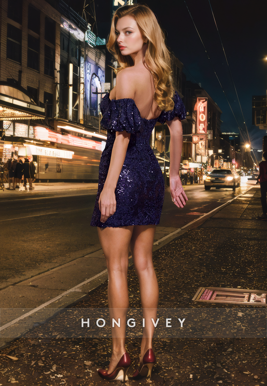 H2115 - Sexy Fitted Glitter Off-Shoulder Feathers Fully Sequined Short Party/Homecoming Dress