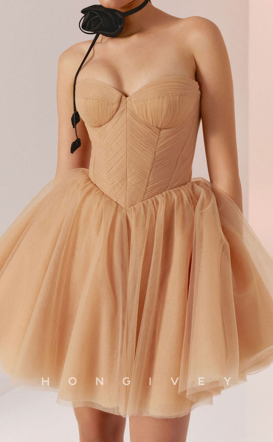 Tulle A-Line Sweetheart Strapless Short Party Homecoming Dress