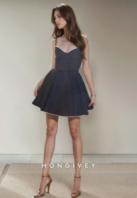 H2162 - Black Sexy A-Line V-Neck Spaghetti Straps Lace-Up Party/Homecoming Dress
