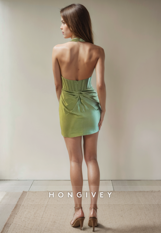 Sheath Halter Sleeveless Empire Ruched Short Party Homecoming Dress