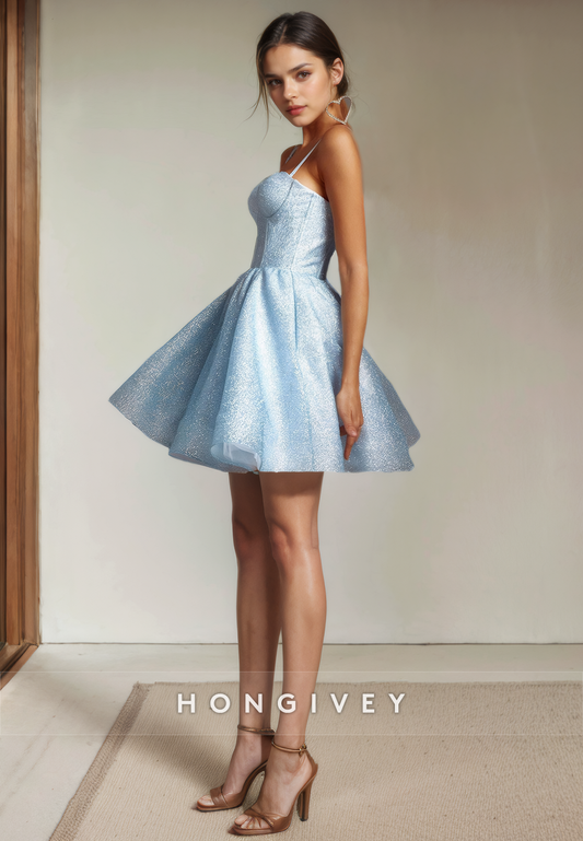 Glitter Tulle A-Line Sweetheart Spaghetti Straps Short Party Homecoming Dress