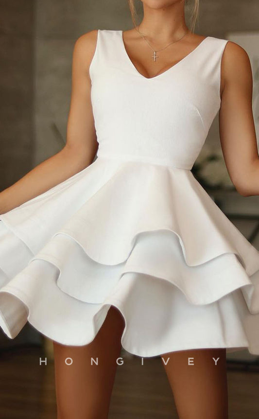 H2195 - Casual Satin A-Line V-Neck Tiered Party/Homecoming Dress