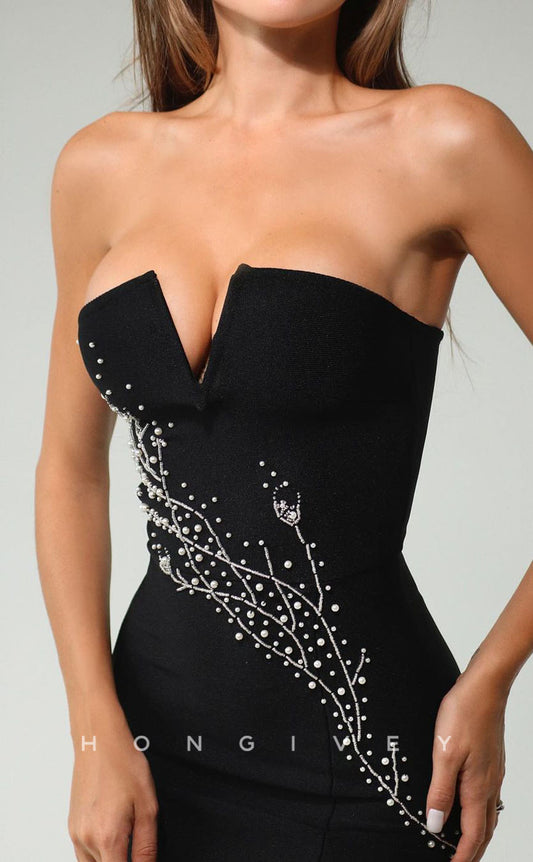 H2189 - Sexy Fitted Strapless Beaded Appliques With Side Slit Party/Homecoming Dress